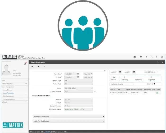 The comprehensive display of this information is presented with user-friendly visual indicators, enabling easy interpretation and understanding. By providing employees with real-time access to their leave and attendance details, Matrix ESS reduces confusion, enhances transparency, and ensures accurate records. This streamlined approach promotes efficiency, empowers employees to stay informed about their leave status, and ultimately contributes to an improved work experience for all.