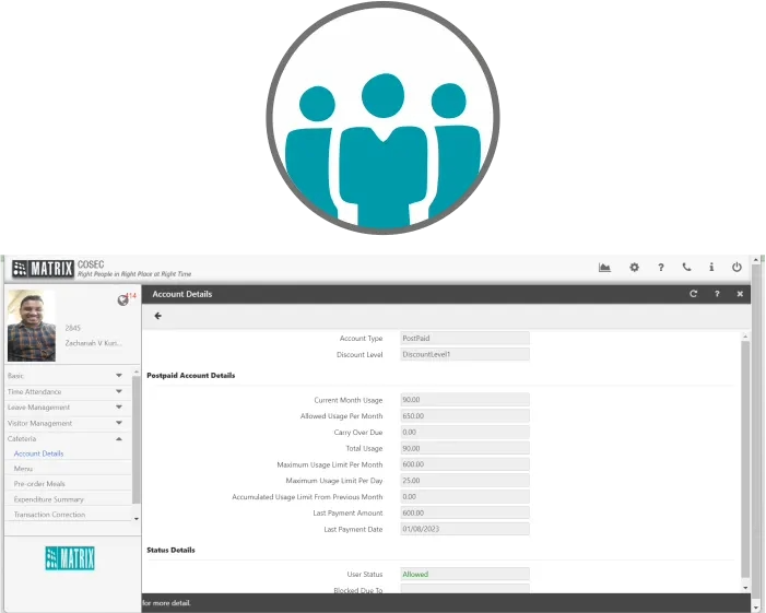 Matrix Employee Self Service (ESS) provides employees with comprehensive access to their cafeteria details, ensuring a transparent and streamlined experience. Through the ESS portal, users can effortlessly track their pre-paid and post-paid cafeteria expenses on a monthly basis. Additionally, employees can conveniently view the monthly menu and request corrections in consumption if needed.