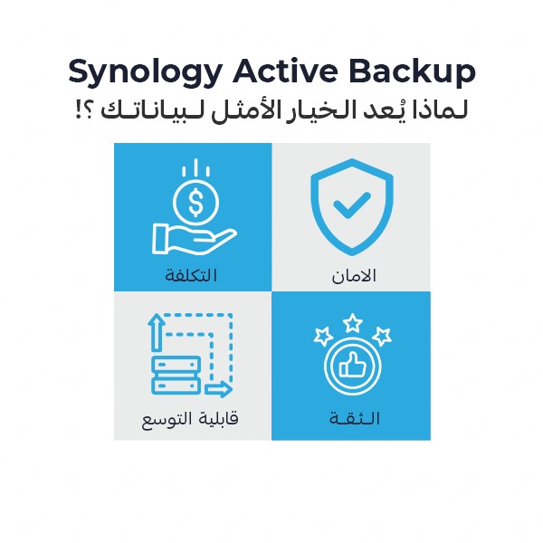 الخلاصة : Synology Active Backup for Business هو الحل المثالي للشركات التي تبحث عن حماية شاملة وموثوقة لبياناتها دون تكاليف إضافية. بفضل ميزاته المتقدمة وسهولة الاستخدام، يضمن استمرارية الأعمال ويوفر راحة البال لمديري تقنية المعلومات في جميع أنحاء العالم.