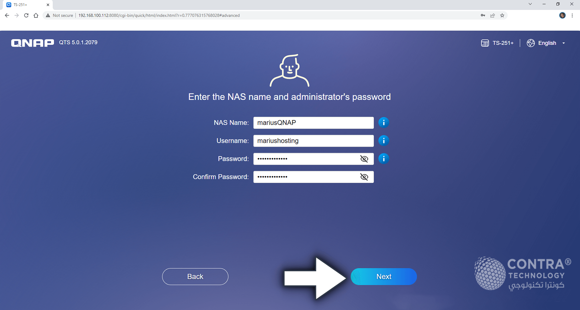 Give your NAS a name. Type in a username or pseudonym of your choice. Type in a password of your choice and confirm it. Click Next. Follow the instructions in the image below.