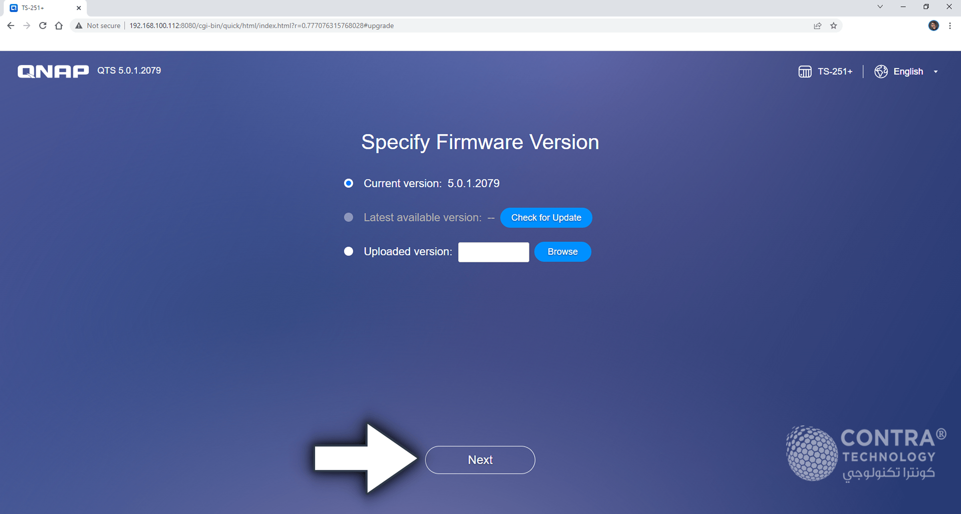 Type in your QNAP NAS address you have previously found with the help of the Qfinder Pro. Check for a real-time update or upload the latest QTS version from the official QNAP website. You need to select your NAS model, then download the QTS operating system. Click Update. Follow the instructions in the image below.