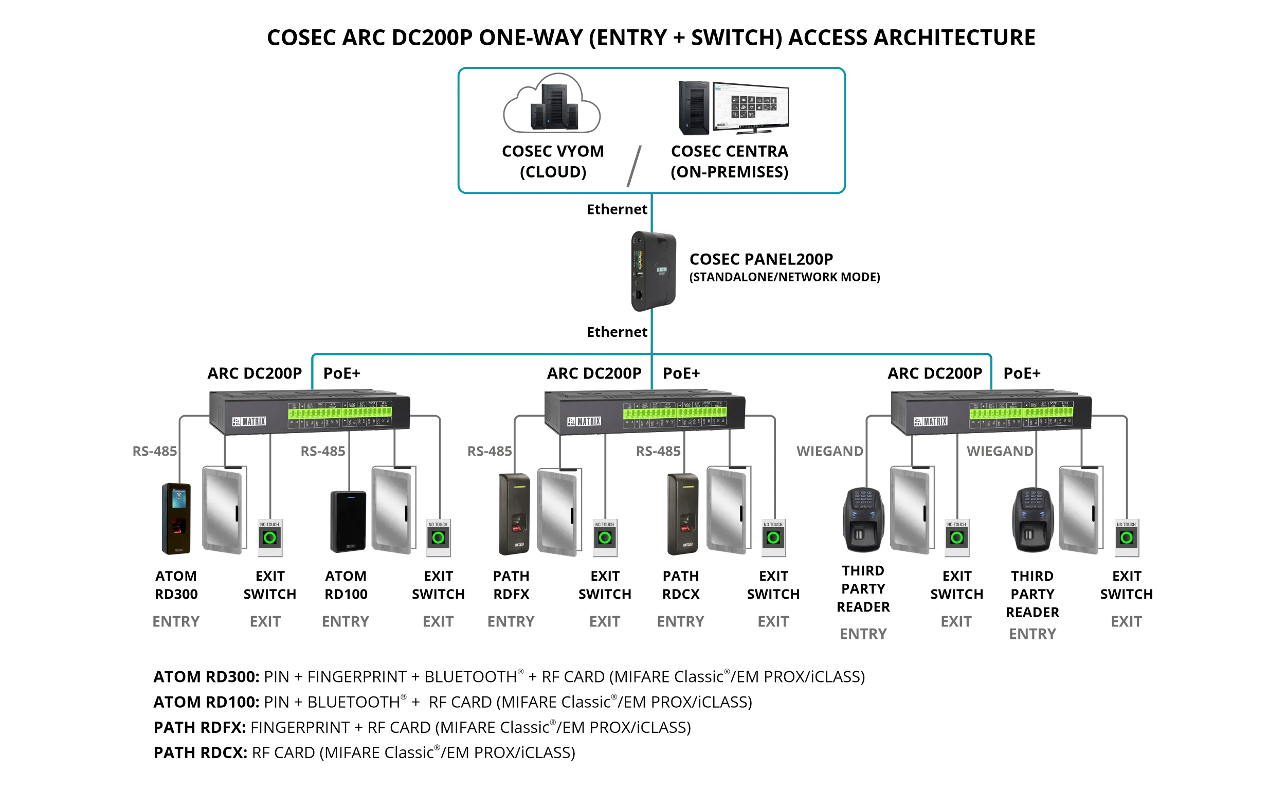 | Operational Modes | Direct/Panel door with COSEC CENTRA/ VYOM Panel door with Standalone COSEC PANEL200 |