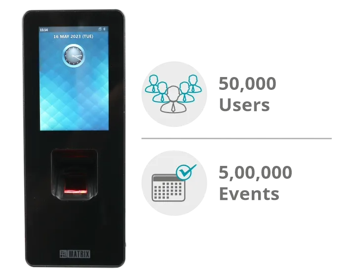 Fingerprint Template Capacity up to 1,00,000 in 1:1 Mode