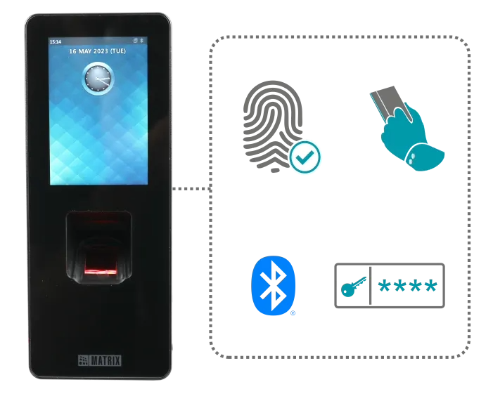 Credential Support Bluetooth® (BLE), Fingerprint, RFID Card, PIN, Face (with Compatible Hardware)