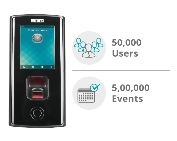Fingerprint Template Capacity up to 1,00,000 in 1:1 Mode