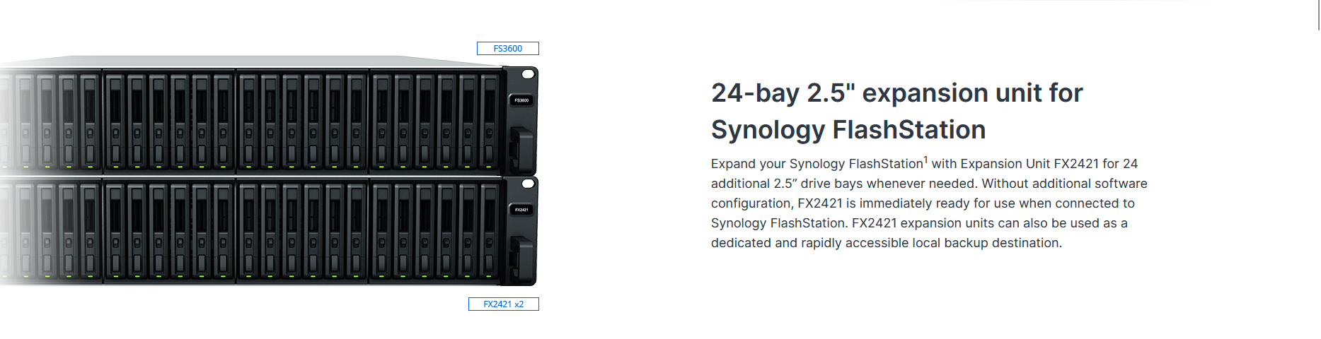 Synology enterprise-grade SAT5200 SATA SSD, developed in tandem with FX2421, provides proven interoperability and high reliability through rigorous validation and compatibility testing with Synology expansion units. Combine SAT5200 drives with Synology FlashStation and FX2421 for a highly reliable and integrated storage setup, and receive long-term Synology updates and support.