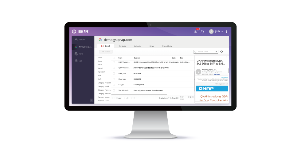 The convenience of Software as a Service (SaaS) solutions such as Google™ Workspace and Microsoft 365® has led to its adoption by many businesses and organizations. However, many users fail to protect this cloud data against data loss, data recovery limitations, and human error. The TS-1232PXU-RP includes QNAP Boxafe, allowing you to back up files, emails, calendars and contacts from Google™ Workspace and Microsoft 365® to provide an extra layer of data protection for business cloud data.