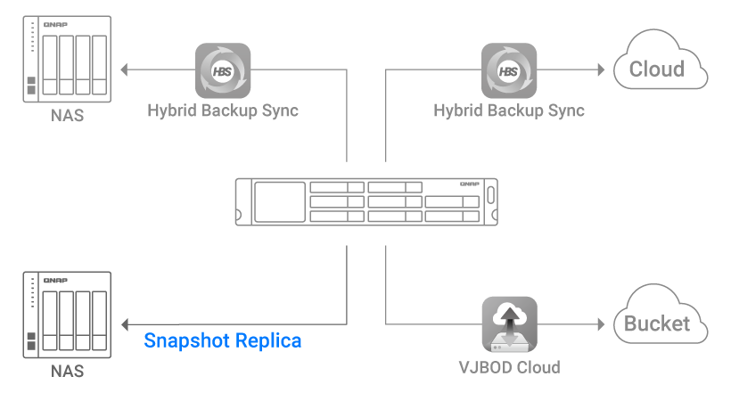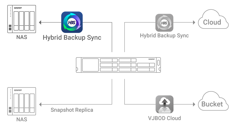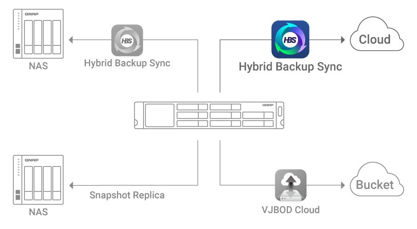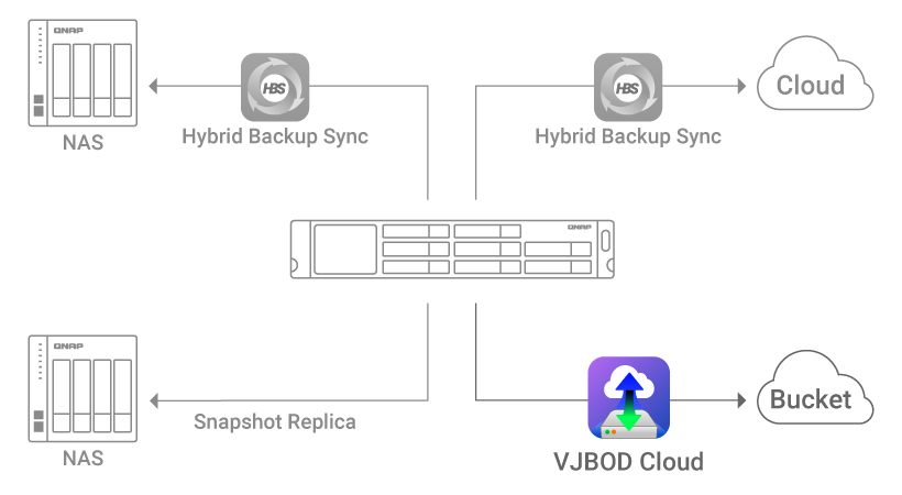 VJBOD Cloud connects cloud object storage (Bucket) and back up data from NAS to the cloud.