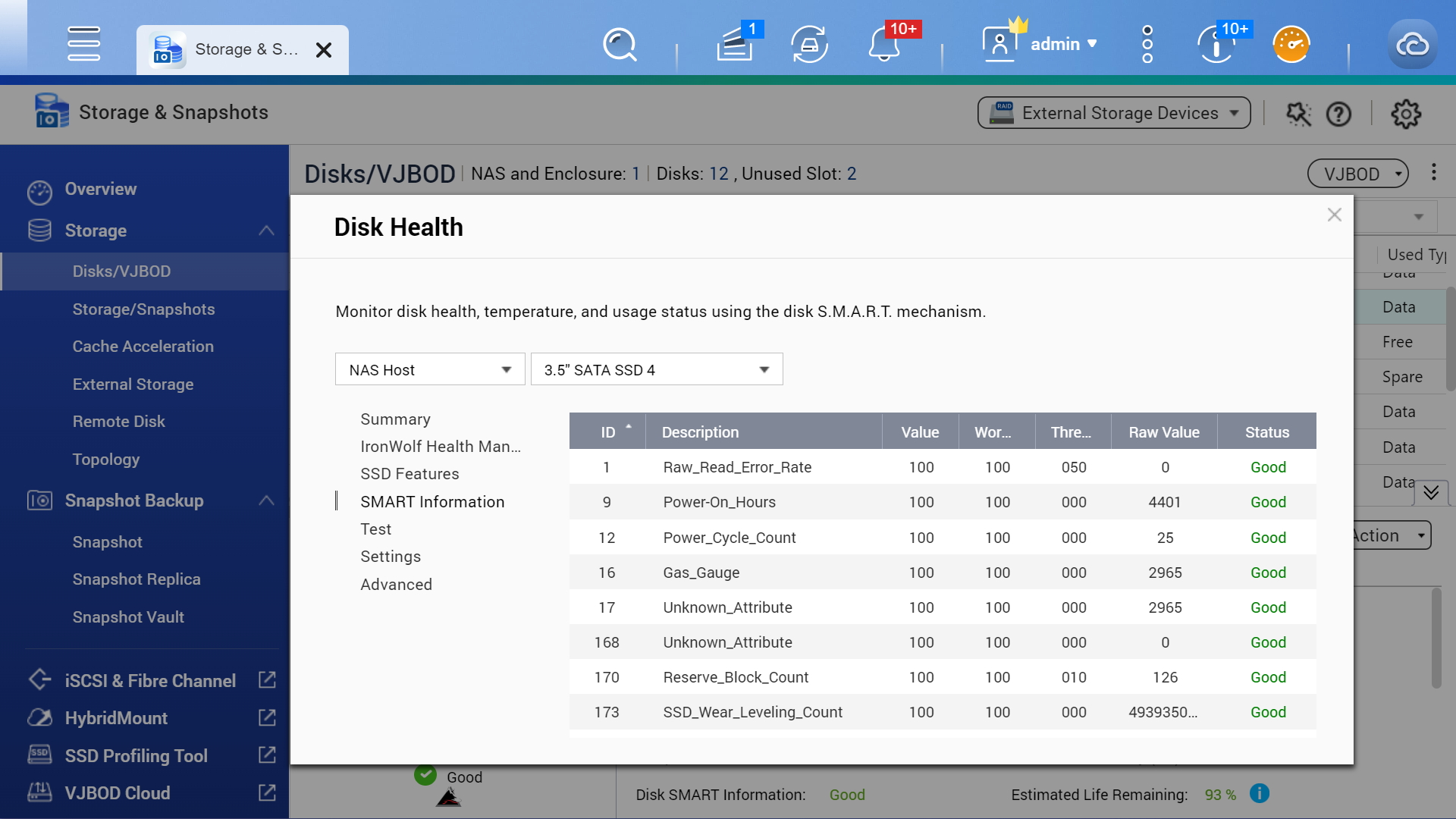If any of the S.M.A.R.T. values are reported as abnormal, or bad blocks are detected, you can take early action and replace drives before potential data loss occurs.