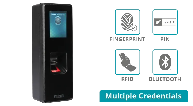 | Credential Support | Fingerprint, PIN, BLE, and Card |